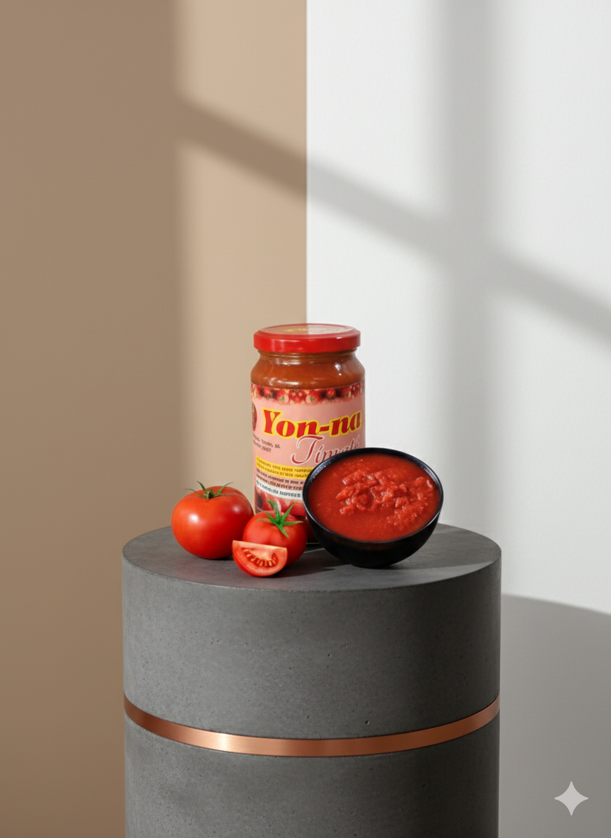 Purée de Tomate Yon-na : Le Secret des Saveurs Riches. Purée onctueuse, prête à l'emploi. Tomates locale et mur pour une saveur authentique et naturelle. Le pilier de votre cuisine.